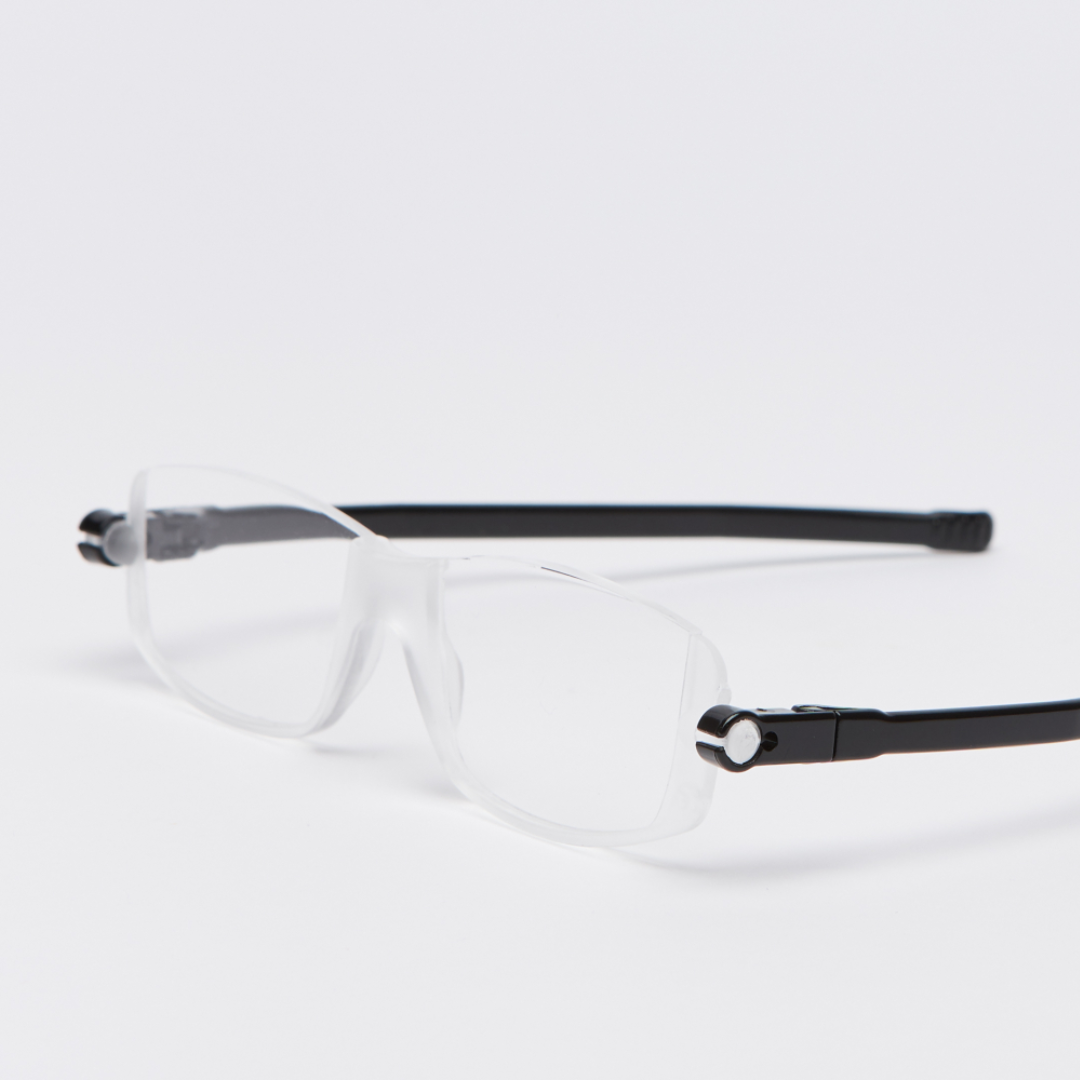 Gracias al sistema de plegado PFT, es uno de los lentes de lectura más delgados y ligeros del mercado. Sus lentes están fabricadas en metacrilato hipoalergénico de alta calidad, mientras que las varillas en Grilamid TR90 —material suizo patentado— ofrecen flexibilidad, resistencia y larga durabilidad.